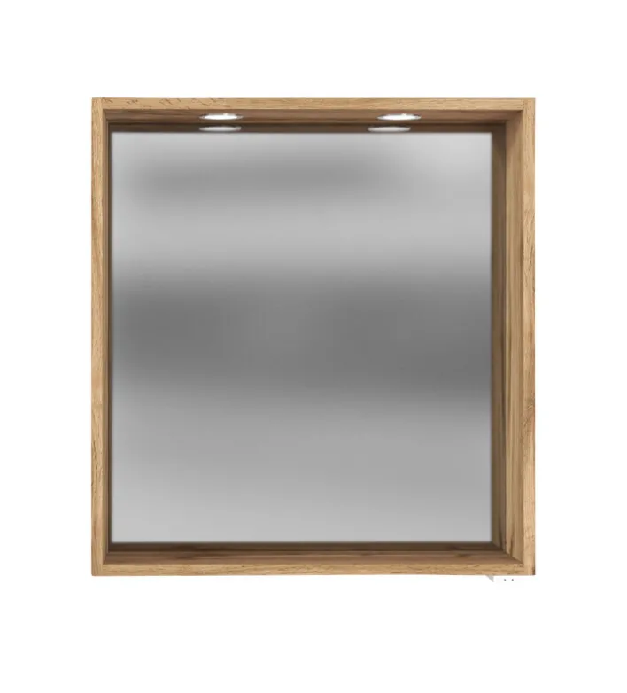 18 Zentimeter tief ist der mit einer LED-Beleuchtung ausgestattete Spiegel DAVOS mit seinem Rahmen aus Wotan Eiche Nachbildung. Der Rahmen kann als Ablage genutzt werden, damit ist der Spiegel sowohl im Flur als Garderobenspiegel als auch in Bad und Schlafzimmer ein praktischer Hingucker.