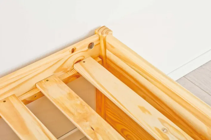 Das Stauraum-/Funktionsbett EMILIAN besteht aus Kiefer Massivholz und benötigt eine Stellfläche von 96 x 47,5 x 209 cm. Hergestellt aus massivem Holz, ist das Bett strapazierfähig und robust und lässt sich mit maximal 100 kg belasten. Das Bettgestell selbst wartet mit mehreren Schubkästen und offenen Fächern auf und bietet Platz für Bücher und vieles mehr. Gemeinsam mit dem Bett kommt der passende Lattenrost und ein Nachtschrank in die eigenen vier Wände.