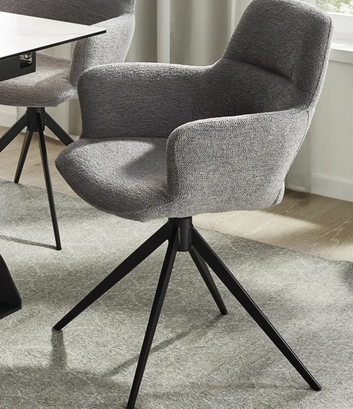 DENVER stellt sich vor als hellgrau und schwarz designter Stuhl mit Armlehnen, der viel Komfort sowie ein stilvoll-elegantes Erscheinungsbild für die moderne Inneneinrichtung verspricht. Er hat ein Vierfußgestell und lässt sich um 360 Grad drehen – ideal, um auch im Sitzen dynamisch zu bleiben und einer Verfestigung von Muskeln und Gelenken gekonnt entgegenzuwirken.