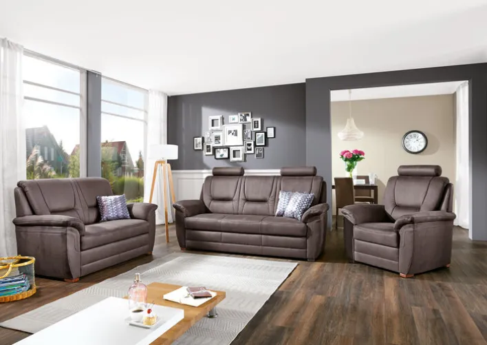 Die Polstergarnitur IMATRA-H der Marke SYSTEMPOLSTER besticht mit einladender Optik und nachhaltigem Komfort. Ihr Wärme ausstrahlender Farbton harmoniert mit vorhandener Einrichtung in trendiger oder klassischer Ausführung. Dank ihrer exzellenten Materialien in bestmöglicher Verarbeitung stellt sie für lange Zeit gute Dienste in Aussicht