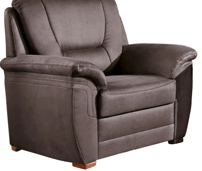 Der gemütliche Sessel IMATRA-H von SYSTEMPOLSTER macht seinem Namen alle Ehre. Für entspannende Stunden beim Lesen, Fernsehen oder bei Unterhaltungen in geselliger Runde ist er ein ideales Sitzmöbel, das ein klassisches Design mit einer modernen Optik verbindet Mit einem Stoffbezug in der Farbe Nougat und antikfarbenen Holzfüßen verbreitet der Sessel eine stilvolle Eleganz im Wohnzimmer. Ein ausgezeichneter Sitzkomfort wird durch eine opulente Polsterung mit einem Super-Bonell-Federkern und einem hochwertigen Polyätherschaum garantiert. In diesem einladenden Sessel mit Kopfstütze können Sie wunderbar relaxen und den stressigen Alltag hinter sich lassen.
