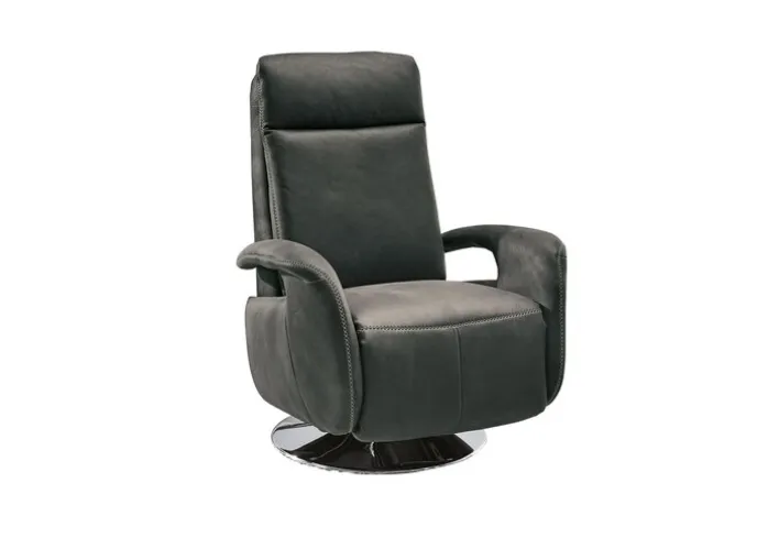 Der TV-Sessel aus dem Hause SYSTEMPOLSTER spricht mit einladendem Erscheinungsbild und modernem Design an. Aufgrund des eleganten und leicht kombinierbaren Farbtons können Sie ihn mühelos in Ihr Wohnzimmer integrieren Ein solider Drehteller aus hochwertigem Edelstahl verleiht dem TV-Sessel von SYSTEMPOLSTER festen Stand und attraktive Optik. Der großzügig dimensionierte Sitz wird von zwei bequemen Armlehnen und einer hohen Rückenlehne umrandet. Alle Komponenten sind hervorragend gepolstert, der darüber liegende Lederbezug im Farbton Anthrazit ist mit doppelt gesteppter Kontrastnaht versehen. Das Besondere an diesem Fernsehsessel ist jedoch seine manuelle Verstellbarkeit. Dank dieser können Sie den Komfort des Sessels im Sitzen und in liegender Position genießen. Für letztere Anwendung ziehen Sie einfach die Fußstütze hervor und drücken die Rückenlehne nach hinten.