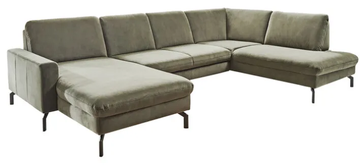 Die 179 x 332 x 220 cm große SYSTEMPOLSTER Wohnlandschaft LISMORE präsentiert sich mit einem Stoffbezug in Olivgrün. Sie überzeugt mit einer großzügig bemessenen Sitzfläche, auf der man sich auch gemütlich für ein Schläfchen am Nachmittag ausstrecken kann.