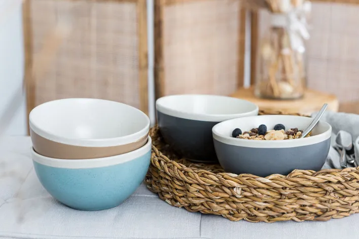 Diese schicke Schale mit einem Durchmesser von 15 cm aus der Keramikart Steinzeug hat eine Höhe von 7 cm. Sie verfügt über einen hellen Rand und eine ebensolche Innenseite, die beide einen ansprechenden Kontrast zum Blau abgeben. Man kann diese Schale auch zum Zubereiten von Speisen oder Erhitzen von Getränken – wie etwa Milch – verwenden, da sie mikrowellengeeignet ist. Nach der Benutzung punktet dieses Geschirr damit, dass man es nicht zeitraubend per Hand abwaschen muss, sondern einfach in die Spülmaschine stellen kann.