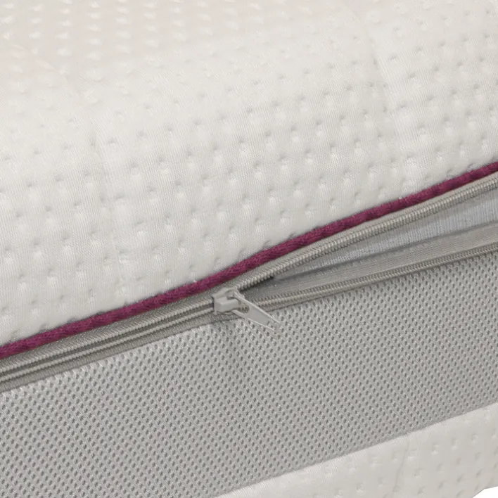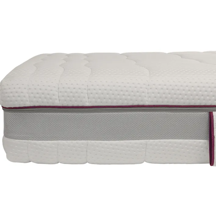 Die Matratze verfügt über einen Taschenfederkern mit sieben Zonen, die eine optimale Unterstützung des Körpers gewährleisten. Der Härtegrad 3 bietet eine feste Liegefläche, die besonders für Personen geeignet ist, die eine stabile Unterstützung bevorzugen. Ein praktischer Reißverschluss ermöglicht das einfache Abnehmen des Bezugs zur Reinigung. Die wellenförmige Struktur des Bezugs verleiht der Matratze nicht nur ein ansprechendes Design, sondern trägt auch zur Belüftung bei.