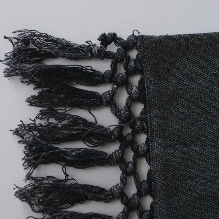 Bei genauem Hinsehen ist die netzartige Struktur zu erkennen, die zwischen dem eigentlichen Gewebe und den Fransen angebracht ist. So wird der Läufer etwas länger, außerdem sieht dies ausgesprochen apart aus. Ein solcher Mittelläufer schmückt jeden Tisch. Gleichzeitig passt er hervorragend zu jedem Geschirr, das das Dunkelgrau absolut neutral ist. Die dezente Farbe ist gleichzeitig sehr elegant und kann zum Beispiel mit Glasleuchtern geschmückt werden.