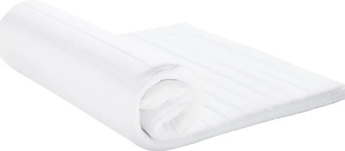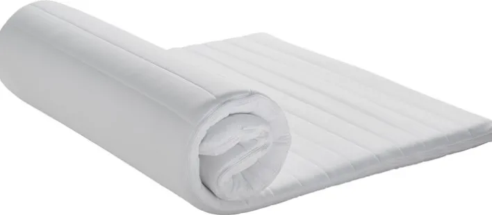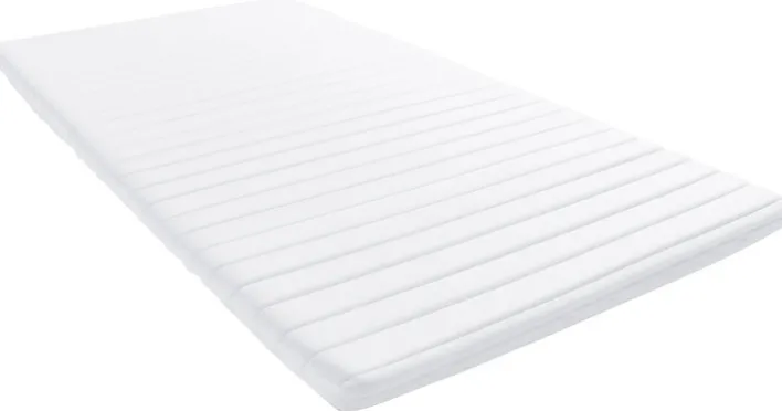 Ein Topper kann zudem die Lebensdauer der darunterliegenden Matratze verlängern, da Verunreinigungen und Schweiß nicht mehr direkt in die Matratze eindringen. Der Topper DORMIPUR von QUARTIER bietet beste Hygienebedingungen: Der weiße, beidseitig versteppte Bezug aus Polyester ist abnehmbar und kann bei 60° gewaschen werden. Darunter befindet sich ein 4 cm dicker Kern aus Kaltschaum. Für einen einfachen Transport ist der Topper gerollt verpackt.“