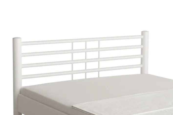 Hergestellt wird das aparte TRAUMWERKSTATT Metallbettgestell CHRISTINA aus strapazierfähigem Metall. Ganz in Weiß und mit einem hohen, stilvoll verzierten Kopfteil bringt es im Handumdrehen ein gemütliches Ambiente ins Schlafzimmer, in dem das Entspannen und Einschlafen leichter fällt. Zusätzlich zum ansprechenden Design überzeugt das Bettgestell mit einer angenehmen Einstiegshöhe. Das Metallbettgestell lässt sich beispielsweise mit dem weißen SATURN Nachttisch kombinieren und ist für Matratzen und Lattenroste in der Größe 90 x 200 cm geeignet.