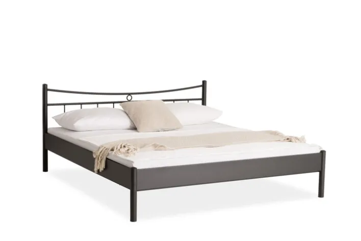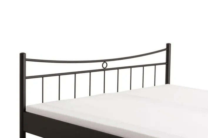 Das TRAUMWERKSTATT Metallbettgestell SVENJA besteht aus schwarzem Metall und hat ein erhöhtes Kopfteil mit romantischen Verzierungen. Durch das wunderschöne Kopfteil zieht das Bettgestell alle Blicke auf sich. Neben dem stilvollen Design überzeugt das 39,5 cm hohe Metallbettgestell mit einem angenehmen Einstieg. Ganz in Schwarz verleiht das Bettgestell dem Schlafzimmer ein gemütliches Wohlfühlambiente mit romantischem Flair. Geeignet ist das Metallgestell für Matratzen und Lattenroste in der Größe 140 x 200 cm.