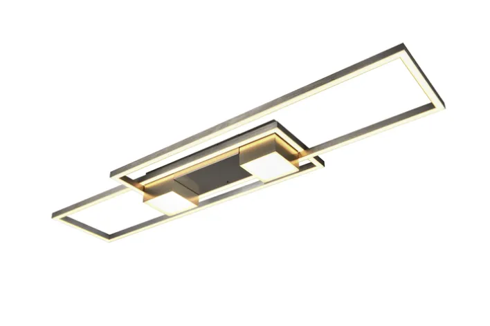 TRIO Leuchten aus Arnsberg hat mit der LED Deckenleuchte ALBANY ein Kunstwerk für den gehobenen Anspruch geschaffen. Sie ist erstklassig mit hochwertigen Materialien verarbeitet. Die Basis bildet das nickelfarbige, silber-glänzende Grundgerüst aus zwei asymmetrisch angeordneten Rechtecken. Mittig befindet sich ein Leuchtschirm aus robustem Kunststoff, in dem 1x bis 37 Watt LED-Leuchtmittel mit bis zu 4300 Lumen und zwischen 2700 und 6500 Kelvin per mitgelieferter Fernbedienung dimmbar sind. Zusätzlich integriert die ALBANY Deckenleuchte Dip Switch, Memory- sowie Nachtlicht-Funktion und eine Lichtfarbverstellung CCT. Sie ist ideal für Küchen, Wohnzimmer und überall dort, wo Wert auf einen exklusiven Hingucker gelegt wird und nur das Beste gut genug ist.