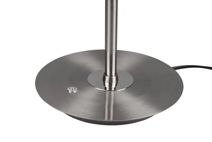 Der Lampenschirm, das individuell einstellbare Gestänge und der Fuß der Tischlampe für den Innenbereich sind aus Metall gefertigt. Die Oberflächen haben einen schönen Glanz. Das energieeffiziente LED-Leuchtmittel ist fest eingebaut und sitzt hinter einer runden Kunststoffscheibe. Das Leuchtmittel hat eine Lebensdauer von etwa 30.000 Stunden.