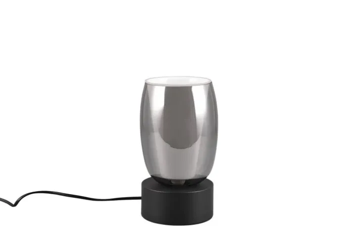 Die TRIO Retrofit Tischlampe TRS BARRET in den Farben schwarz/ rauchfarbig ist 24 cm hoch und zieht mit ihrem extravaganten Look alle Blicke auf sich. Durch das elegante Design harmoniert die Tischleuchte mit vielen Einrichtungsstilen und macht auf Sideboards und Beistelltischen eine tolle Figur.