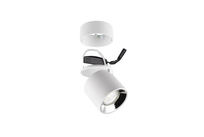 Dieser Spot ist dank seiner Farbe sowie seiner Form ein absoluter Hingucker in jedem Raum. Seine Montage kann sowohl als Einbau oder Aufbau erfolgen, sprich: als Wandleuchte oder Deckenleuchte, je nach persönlicher Präferenz. Somit eignet er sich beispielsweise, um einen Raum zu beleuchten oder aber etwa einzelne Dinge im Zimmer, wie etwa Bilder. Das aus weißem Metall bestehende Produkt hat einen Durchmesser von 8,7 cm sowie eine Höhe von 12 cm. Ein passendes Leuchtmittel kann separat bestellt werden.