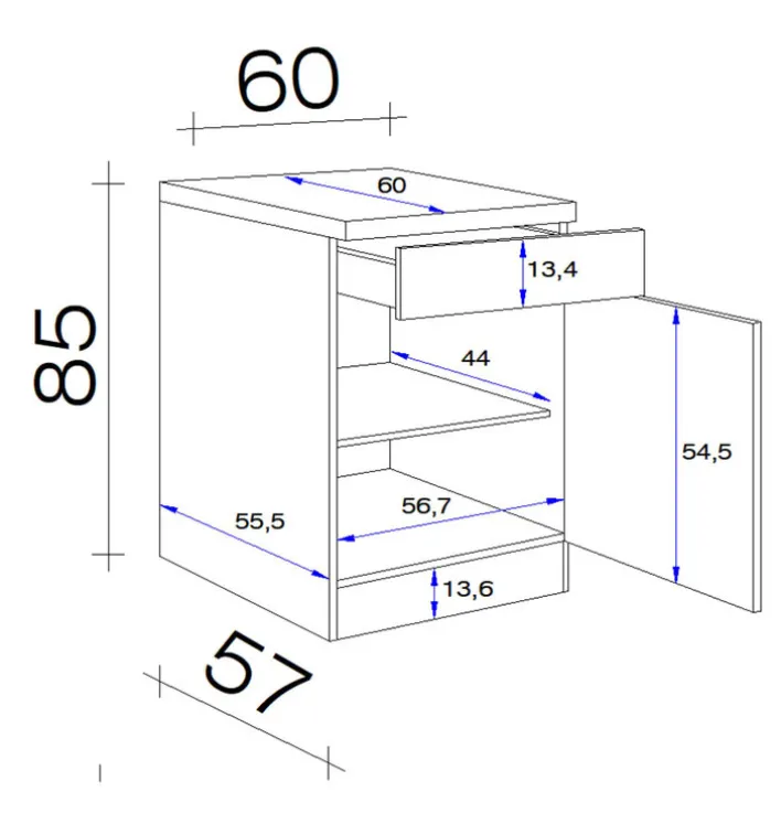 Sockelblende inklusive: jaGriffe inklusive: jaAnzahl Drehtüren inklusive: 1Anzahl Falttüren inklusive: keineAnzahl Schubkästen inklusive: 1Anzahl Einlegeböden inklusive: 1