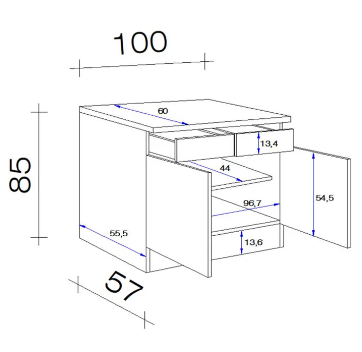 Sockelblende inklusive: jaGriffe inklusive: jaAnzahl Drehtüren inklusive: 2Anzahl Schubkästen inklusive: 2Anzahl Einlegeböden inklusive: 1