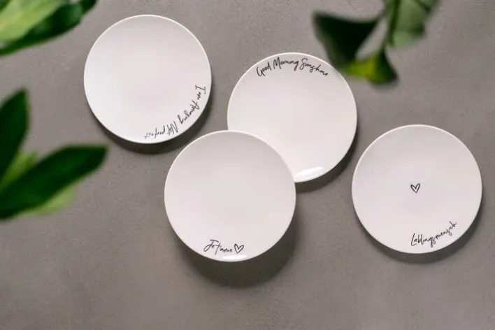 Mit seinem Durchmesser von 21,2 cm macht der Teller sich ideal auf dem Frühstückstisch. Sein Design als STATEMENT LIEBLINGSMENSCH zaubert jedem Nutzer ein Lächeln ins Gesicht. Hergestellt ist er von der Firma Villeroy & Boch. Als Traditionsunternehmen seit dem Jahre 1748 steht es für stilvolle und designstarke Produkte aus Keramik.