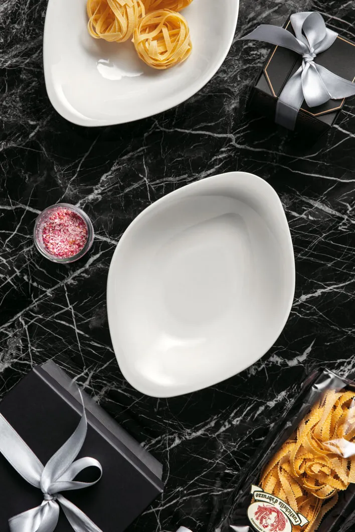 Die formschönen Pastaschalen DUNE in der Farbe Weiß von Villeroy & Boch haben eine Größe von 21 x 27 cm und bestehen aus hochwertigem Fine China Porzellan. Mit diesem Set können Sie Nudeln und Pasta auf stilvolle Art zu zweit genießen.