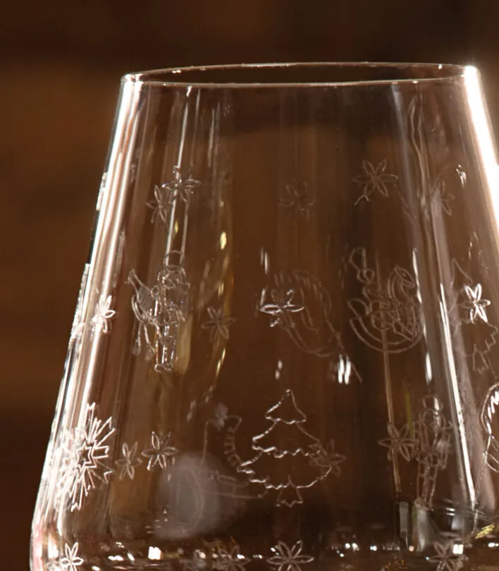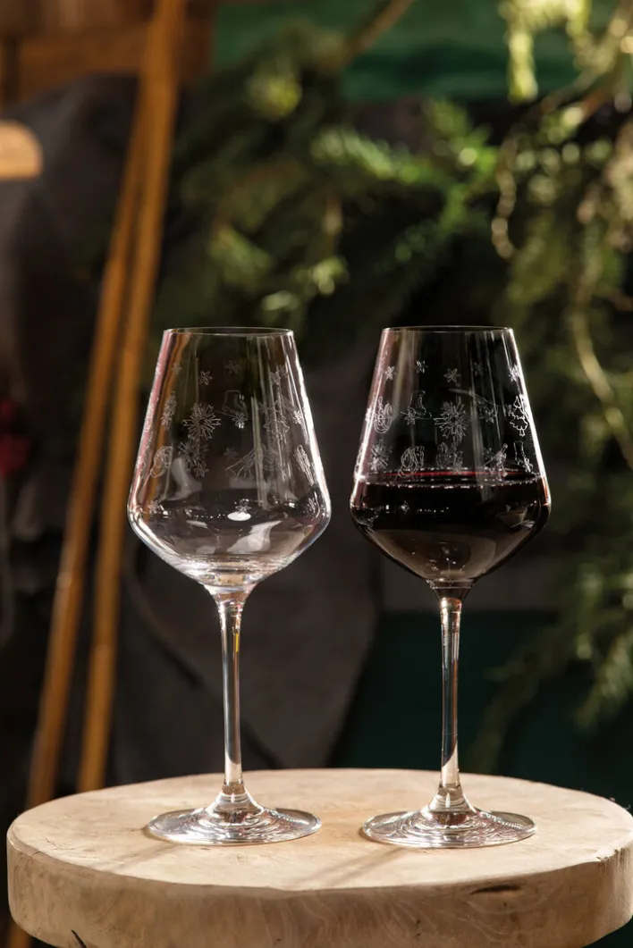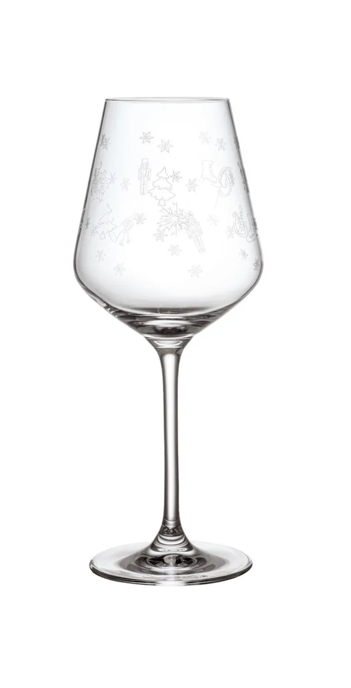 Mit dem Rotweinglas – einem 2er-Set aus der TOY’s DELIGHT Kollektion des international bekannten Porzellan-Herstellers Villeroy & Boch – kann das Weihnachtsfest endlich kommen. Das Rotweinglas ist mit einem feinen, sehr dezent gearbeiteten Streumuster aus weihnachtlichen Motiven versehen, welches in das hochwertige Kristallglas eingraviert ist. Dieses Set ist etwas ganz Besonderes und kann daher auch bewusst zu bestehenden Glas-Kollektionen kombiniert und in der Weihnachtszeit verwendet werden.