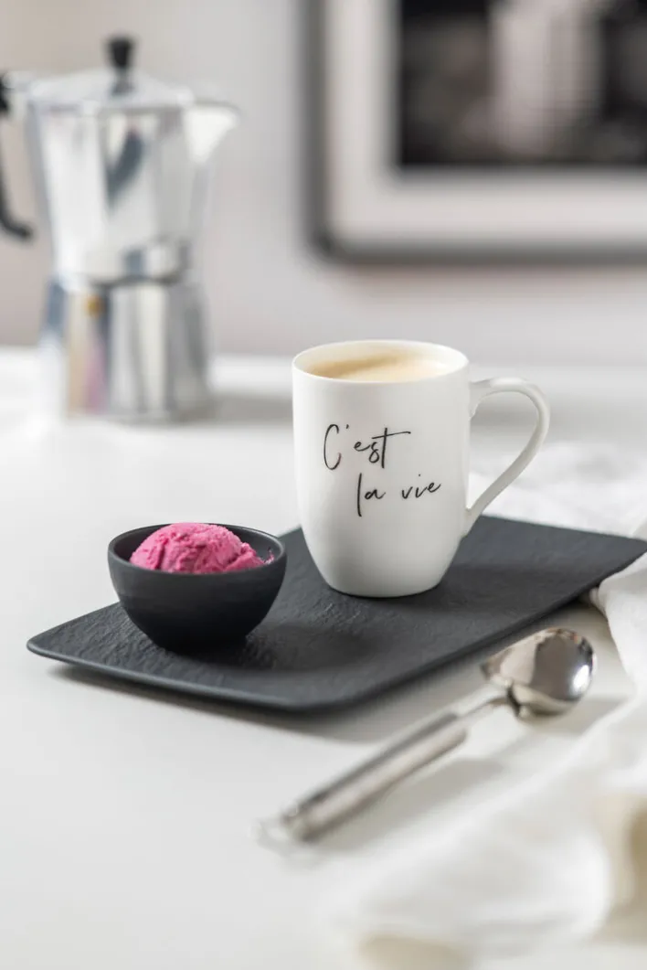 Ob im Alltag oder zu einem besonderen Anlass – die Servierplatte kommt zu vielen Gelegenheiten bestens zum Einsatz. Die rechteckige Form ist gut geeignet, um Hauptspeisen oder Beilagen zu servieren. Die Platte kann optimal mit weiteren dunklen Servierhilfen oder zu dunklem Geschirr kombiniert werden, um ein einheitliches Gesamtbild zu erhalten. Die dezente Farbe lässt viel Spielraum für Dekoration auf dem Esstisch. Das Porzellan ist hochwertig und mikrowellenfest, sodass es auch genutzt werden kann, um ein Gericht aufzuwärmen. Zudem ist die Servierplatte spülmaschinenfest, was die Reinigung erleichtert und viel Arbeit im Haushalt spart.
