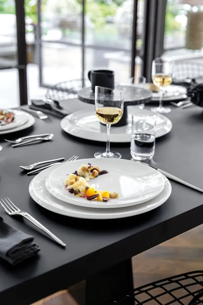 Mit seiner NEW MOON Serie hat sich Villeroy & Boch von der der Schönheit und Kraft des Mondes inspirieren lassen und seine Form in die verschiedenen Stücke miteinfließen lassen. Dieser Teller symbolisiert den Vollmond. Er besteht aus exklusivem Porzellan, das mikrowellenfest und spülmaschinengeeignet ist. Es handelt sich um einen flachen Teller, der aufgrund seiner Größe hervorragend für Hauptgerichte geeignet ist. Dank des minimalistischen Designs ist er außerdem ein wahres Kombinationstalent, das für nahezu jeden Anlass geeignet ist. #porta #portamöbel #silvesterparty