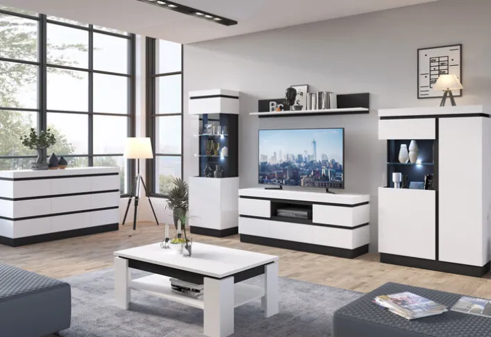 Die Vitrine aus der Serie AMALIA besticht durch ihr modernes Design und die Kombination aus Alpinweiß und Anthrazit. Mit einer Breite von 60 cm, einer Höhe von 201 cm und einer Tiefe von 40 cm bietet sie ausreichend Platz für Ihre Ausstellungsstücke. Die Vitrine verfügt über eine Drehtür und fünf Einlegeböden, die aus Klarglas gefertigt sind, was eine klare Sicht auf den Inhalt ermöglicht.