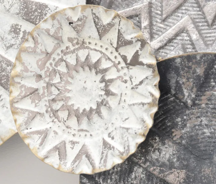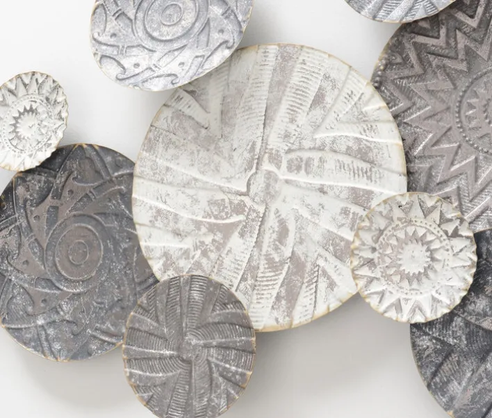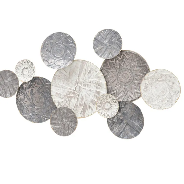 Die Wanddeko CARITAN ist 110 cm breit, hat eine Höhe von 60 cm und ist 7 cm tief. Sie setzt sich aus einer Vielzahl von runden Elementen zusammen, die alle anders gestaltet sind. In der Gesamtheit ergibt sich ein stimmiges Gesamtbild, das jeden Raum optisch aufwertet. Die Wanddeko CARITAN ist ein toller Blickfang für das Wohnzimmer, Schlafzimmer oder das Gästezimmer. Auch in der Diele oder im Esszimmer zieht sie alle Blicke auf sich. Sie passt sowohl zu einem modernen, als auch zu einem klassischen Einrichtungsstil.