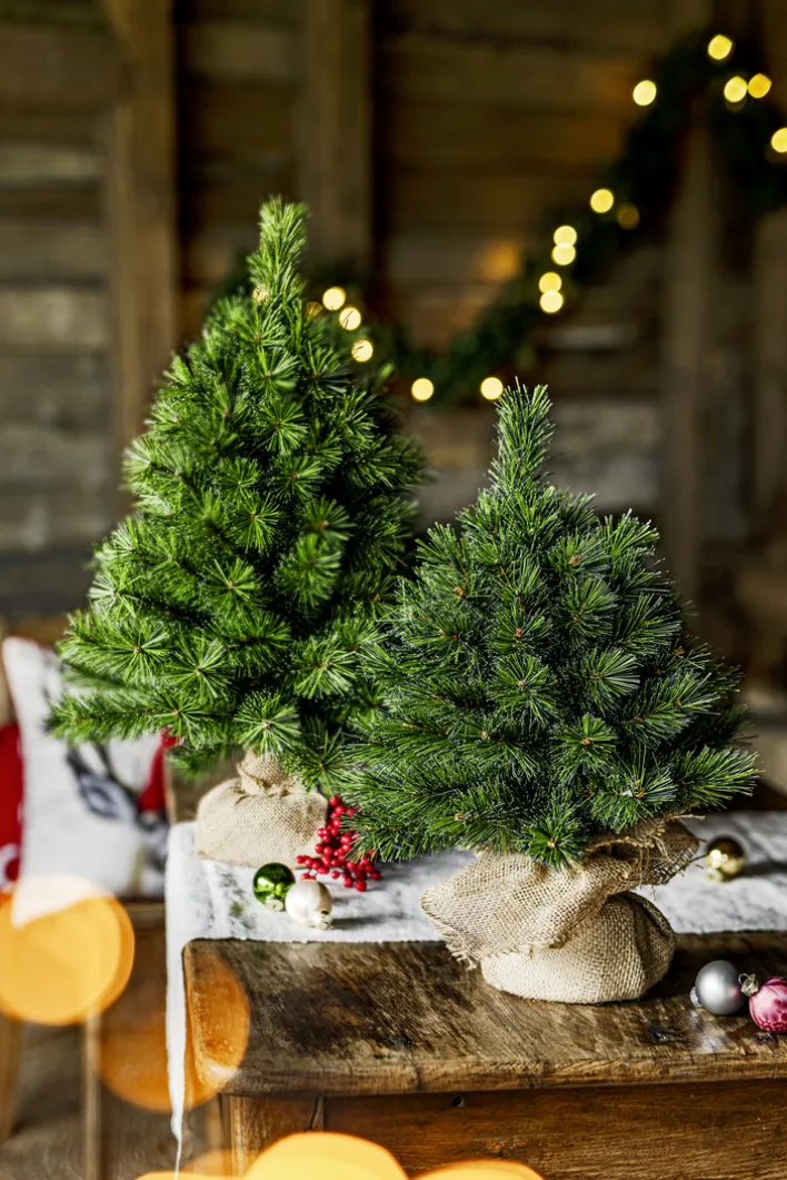 Der liebevoll am Fuß in einen echten Jutebeutel verpackte Baum ist ideal für die Weihnachtsdekoration im Landhausstil geeignet. Das Modell sorgt schon im Advent für festliche Stimmung, wenn es auf Tischen, Sideboards und im Fenster steht. Der langlebige Hartnadel-Deko-Weihnachtsbaum aus robustem Kunststoff kann nach Silvester gut verpackt im Keller verstaut werden. Das Modell fasziniert einzeln und auch in der Gruppe als Teil einer kunstvollen Winterlandschaft.