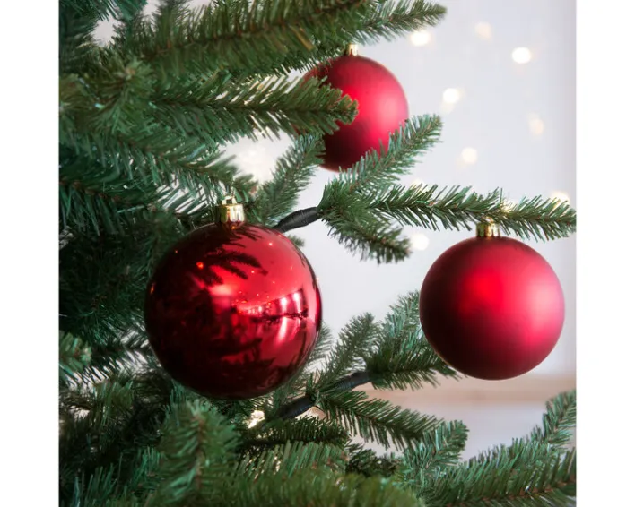 Mit ihrem kräftigen Rotton verbreiten diese stilvollen Kugeln sofort ein weihnachtliches Flair. Sie eignen sich besonders gut als Christbaumschmuck und können beispielsweise gut mit goldenen Kugeln sowie mit wunderschönem Holzschmuck kombiniert werden. Die Kugeln aus dem 4er-Set besteht aus Kunststoff und sind direkt mit den passenden Anhängern ausgestattet. Vor allem mit einer traditionellen Weihnachtsdeko lassen sie sich gut vereinbaren. Sie passen aber auch zu modernem Christbaumschmuck und sind so besonders vielseitig einsetzbar.