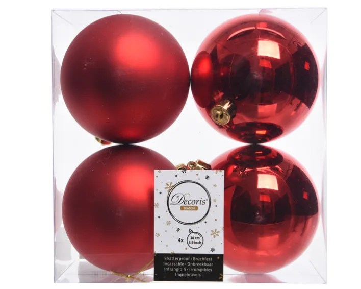 Dieser Weihnachtskugeln MIX enthält vier zauberhafte Kugeln in Rot, die jeweils einen Durchmesser von 10 cm besitzen. Zwei Kugeln begeistern mit einer glänzenden Oberfläche, die anderen beiden sind matt.