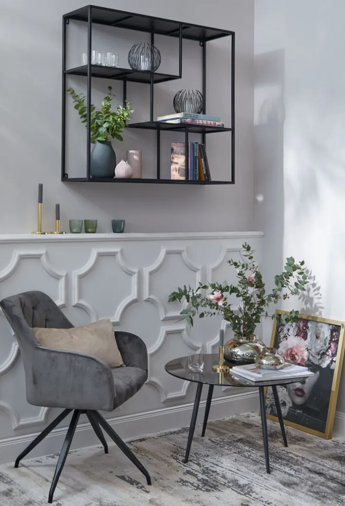 Der Kerzenhalter mit dem außergewöhnlichen Erscheinungsbild ist aus hochwertigem Metall. Die gebogenen Stäbe und der stabile Boden sind in der Farbe schwarz lackiert. Im Innern des Kerzenhalters ist ein Zylinder aus klarem Glas, der das Teelicht vor Zugluft schützt. Das schöne Windlicht bietet Platz für ein handelsübliches Teelicht. #porta #portamöbel #meinporta #olivegreen #naturtyp #warmhome #coffeeculture #scandihome #multifunctional