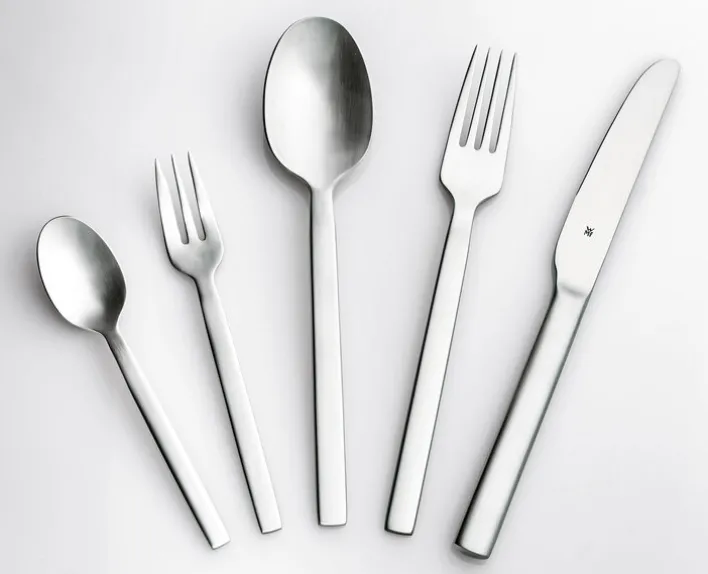 Klare Konturen und ein betont sachliches Design prägen den Charakter dieses gleichermaßen schlichten wie schönen Bestecks. Dabei wirkt ALTEO keinesfalls streng – die ausladenden Besteckvorderteile erinnern an klassische leicht verspielte Vorbilder. Die abgerundeten Formen der langen schlanken Griffe liegen angenehm in der Hand und die seidig schimmernde Mattierung wirkt edel zurückhaltend.