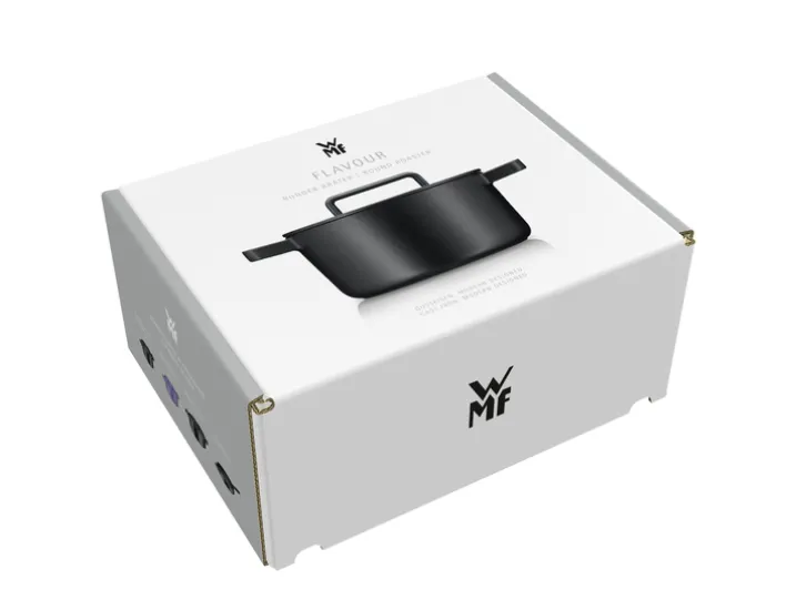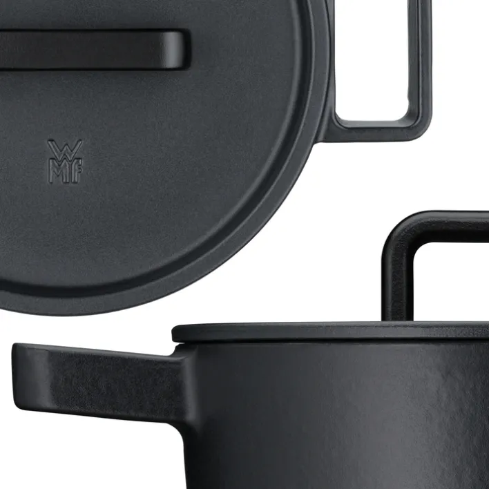 Der WMF Bräter FLAVOUR mit einem Durchmesser von 24 cm ist aus schwarzem, emailliertem Gusseisen gefertigt. Er bietet ein Volumen von 5,2 Liter und ist für alle Herdarten geeignet.