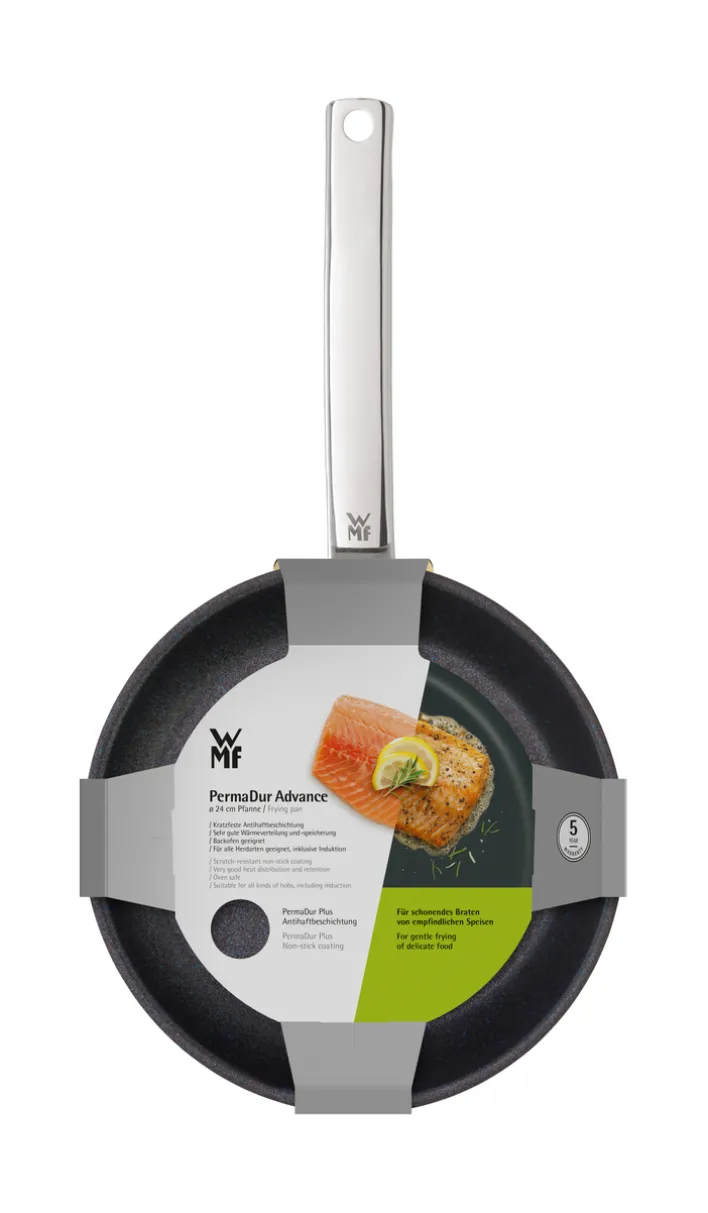 Die strapazierfähige WMF Stielpfanne PERMADUR ADVANC hat einen Durchmesser von 24 cm und ist ein Allrounder für die Küche. Dank der robusten Beschichtung gelingen in der hochwertigen Pfanne aus silberfarbigem Edelstahl verschiedene Mehl- und Eierspeisen, aber auch Fisch, Fleisch und Geflügel. Zum tropffreien Ausgießen von feinen Soßen ist die tolle Stielpfanne mit einem breiten Schüttrand ausgestattet.