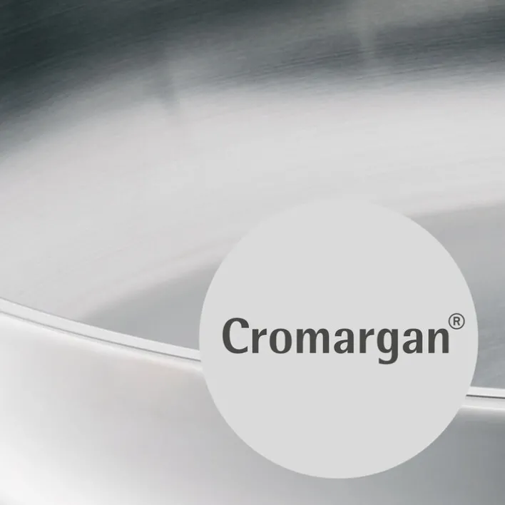 Die WMF Pfanne PROFI mit ergonomischem Griff ist aus hochwertigem 18/10 Cromargan Edelstahl gefertigt. Mit einem Durchmesser von 28 cm ist die Pfanne ideal für mittelgroße Portionen geeignet und der 9 cm hohe Rand erlaubt auch das Zubereiten von Gerichten mit Soßen. Ganz ohne Beschichtung ist die Pfanne zudem die ideale Wahl für ein scharfes Anbraten bei hohen Temperaturen. Die runde Pfanne ist mit einem TransTherm Allherdboden ausgestattet, der nicht nur eine gleichmäßige Wärmeverteilung ermöglicht, sondern auch für eine lange Wärmespeicherung sorgt. Somit ist ein energiesparendes Kochen möglich.