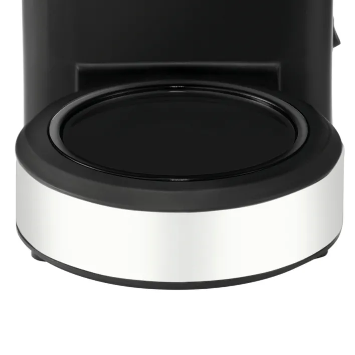 Die Kaffeemaschine aus der Serie STELIO PAPER präsentiert sich in einer klaren, modernen Form mit silberfarbenen und schwarzen Elementen. Die Kombination aus Glas, Kunststoff und Metall verleiht dem Gerät eine schlichte Optik, wobei die Glaskanne durch ihre Transparenz einen guten Überblick über den Füllstand bietet. Der Wasserstandsanzeiger an der Seite ist deutlich sichtbar und mit einer Skala bis zu 10 Tassen versehen.