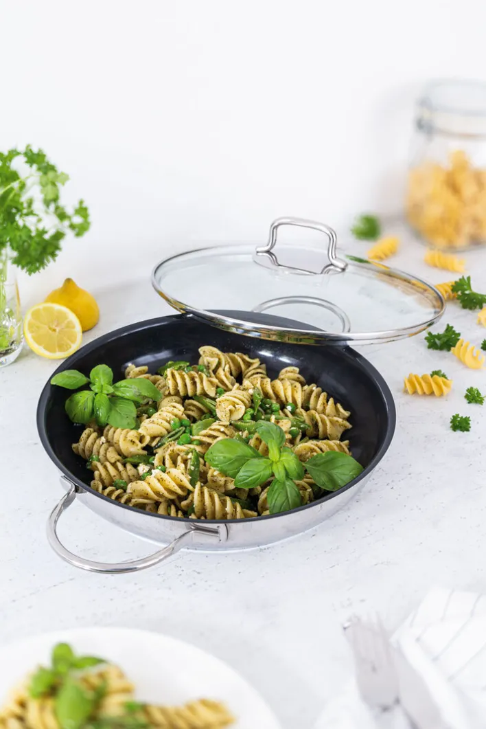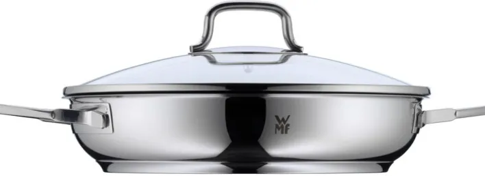 Die Servierpfanne aus Edelstahl von der deutschen Qualitätsmarke WMF zeichnet sich durch eine hochwertige Verarbeitung aus und ist für alle Herdarten, inklusive moderne Induktionsherde, geeignet.