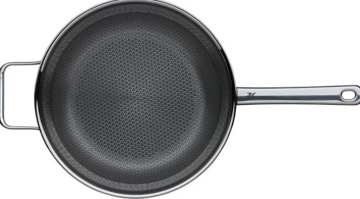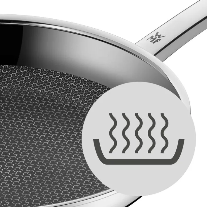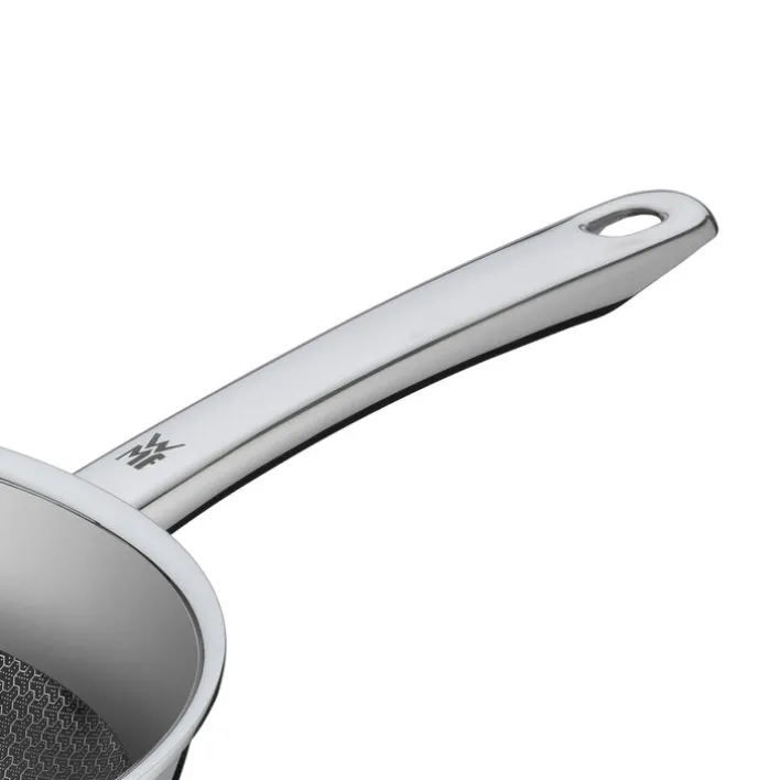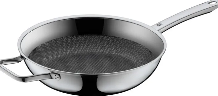 Die hochwertige WMF Stielpfanne PROFI RESIST hat einen Durchmesser von 28 cm und ist ein Kochgerät der Extraklasse. Durch die Verwendung von Edelstahl in Verbindung mit einer hochwertigen Beschichtung eignet sich die silberfarbige Pfanne zum Schmoren, Braten und Kochen von Fleisch, Fisch und Geflügel. Die Stielpfanne ist auch zum Zubereiten oder zum Warmhalten von Gerichten im Backofen verwendbar.
