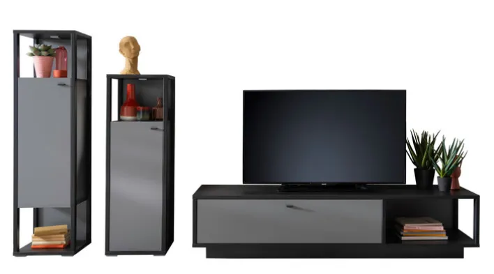 Die 3-teilige Wohnwand LUXOR III in der modernen Farbkombination Royal Grau/Anthrazit schenkt dem Wohnzimmer einen top modernen Look. Zudem bietet die Wohnwand umfangreichen Stauraum für Alltagsgegenstände sowie Ausstellungsflächen.