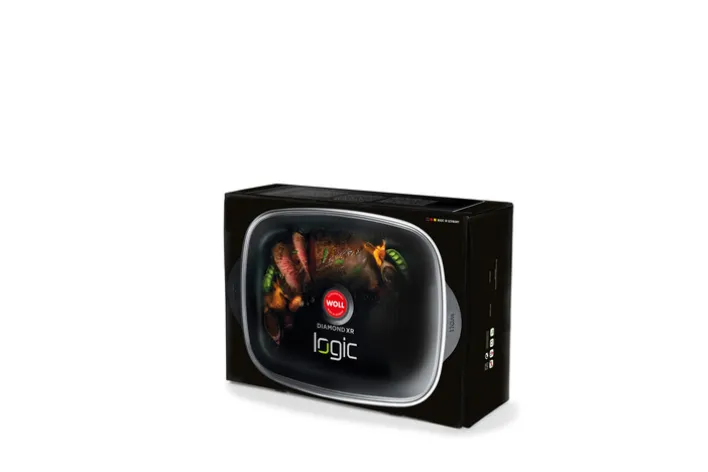 Der schwarze Gussbräter ECO LOGIC von WOLL ist mit einem Volumen von 7,8 Litern ideal für ganze Geflügel und große Braten geeignet. Das Modell aus Aluminium und Glas hat eine Breite von 31 Zentimetern, eine Tiefe von 26 Zentimetern und eine Höhe von elf Zentimetern.