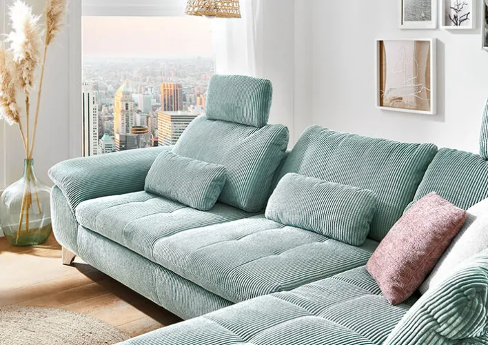 Wir stellen Ihnen die prächtige YoungLife Wohnlandschaft CHATELET in einem atemberaubenden aquablauen Farbton vor. Machen Sie sich bereit für das ultimative Entspannungserlebnis mit dieser außergewöhnlichen Wohnlandschaft, die Ihren Lebensraum in eine luxuriöse Oase verwandeln wird. Die mit viel Liebe zum Detail entworfenen Armlehnen des CHATELET sind feststehend und sorgen für maximale Stabilität und Komfort. Mit den großzügigen Maßen von 306 x 197 cm bietet diese Wohnlandschaft Ihnen und Ihren Lieben ausreichend Platz, um sich zu entspannen und schöne Erinnerungen zu schaffen. Das CHATELET ist aus exquisitem Kordstoff gefertigt und lässt Sie bei jeder Berührung in eine Welt der Üppigkeit eintauchen. Der Stoffbezug verleiht der Wohnlandschaft einen Hauch von Eleganz und Raffinesse und hebt die Gesamtästhetik dieser Wohnlandschaft auf ein neues Niveau.Aber das ist noch nicht alles! Die echte Rückseite des CHATELET ist ein Beweis für seine überlegene Handwerkskunst. Sie wurde so konzipiert, dass sie eine optimale Unterstützung bietet und die richtige Körperhaltung fördert. So können Sie sich von lästigen Rückenschmerzen verabschieden und die Entspannung in den Mittelpunkt stellen. Lassen Sie sich von der YoungLife Wohnlandschaft CHATELET aqua verzaubern und erheben Sie Ihr Zuhause in neue Dimensionen der Eleganz und Raffinesse. Lassen Sie sich von der kompromisslosen Qualität, dem tadellosen Design und dem unerschütterlichen Komfort der CHATELET begeistern. Ergreifen Sie die Gelegenheit, Ihren Wohnraum zu verändern und in ein Reich des Luxus einzutreten, das die Art und Weise, wie Sie sich entspannen und erholen, neu definieren wird. Schenken Sie sich selbst den puren Genuss, denn Sie haben nichts anderes verdient.