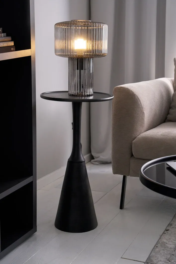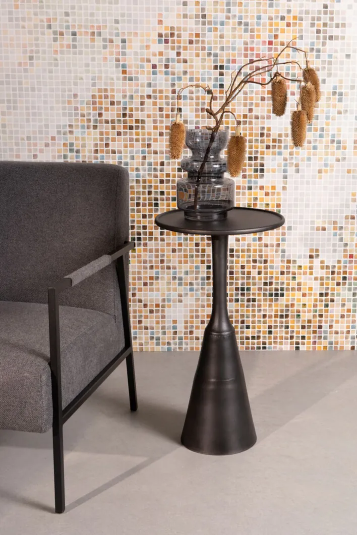 Der zuiver Beistelltisch SERGIO besteht aus schwarz lackiertem Aluminium und lässt sich mit einem Gewicht von 10 kg kinderleicht umstellen. Durch seinen spannenden Sockel und die runde Tischplatte erinnert der Abstelltisch an einen umgedrehten Sektkelch. Ob als Ablage für Smartphone und Schlüssel, Pflanzenhocker oder Lampensockel, dieser Beistelltisch sorgt stets für bewundernde Blicke. Mit seinem außergewöhnlichen und doch minimalistischen Design lässt sich der Beistelltisch in praktisch jedes Ambiente integrieren.