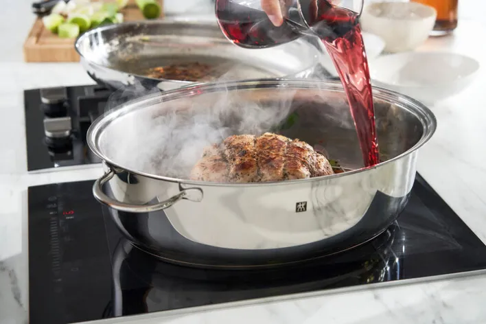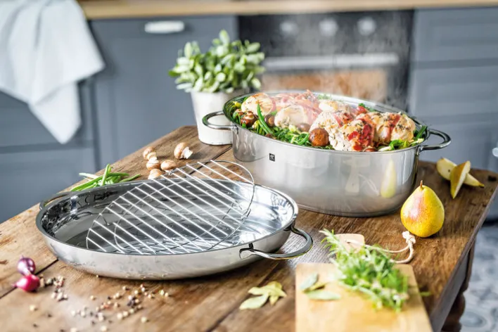 Die Einsatzmöglichkeiten für dieses hochwertige Produkt der Marke ZWILLING sind extrem vielseitig. Sie können in dem Bräter Fleisch auf dem Herd zuerst anbraten und anschließend im Backofen fertig garen. Süßspeisen, wie Rohrnudeln oder Pflaumenmus, gelingen in dieser Mischung aus Pfanne und Topf ebenfalls erstklassig. Schmoren, dünsten oder große Mengen Eintopf kochen – im Bräter PLUS gar kein Problem. Er ist für alle Herdarten geeignet und im Handumdrehen gereinigt. Sowohl der Deckel als auch der hohe untere Teil besitzen einen Sandwichboden, der die Hitze gleichmäßig verteilt und ein energiesparendes Kochen ermöglicht.
