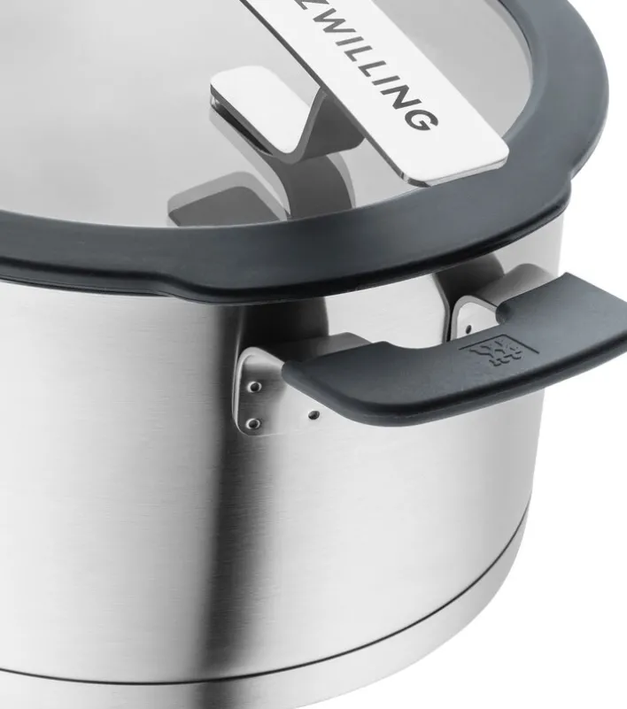 Mit hochwertigen Materialien, stylischem Design und innovativen Lösungen für kleine Probleme lässt das silberfarbige ZWILLING Kochtopfset SIMPLIFY keine Wünsche offen. Es ist aus Edelstahl gefertigt und besteht aus drei Kochtöpfen mit Durchmessern von 16, 20 und 24 cm, einem Stieltopf mit 16 cm Durchmesser und einem Bratentopf mit 20 cm Durchmesser.