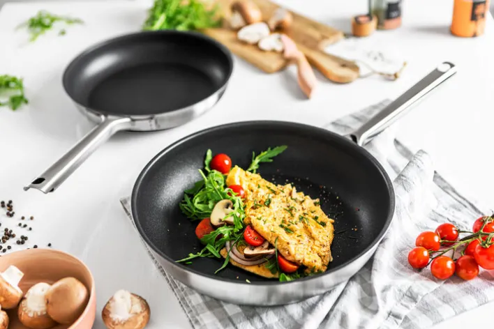Die Pfannen des Sets sind aus rostfreiem Edelstahl gefertigt. Die beschichteten Innenseiten sind geschmacksneutral, hygienisch und pflegeleicht. Die Pfannen sind für alle Herdarten, inklusive Induktion geeignet.