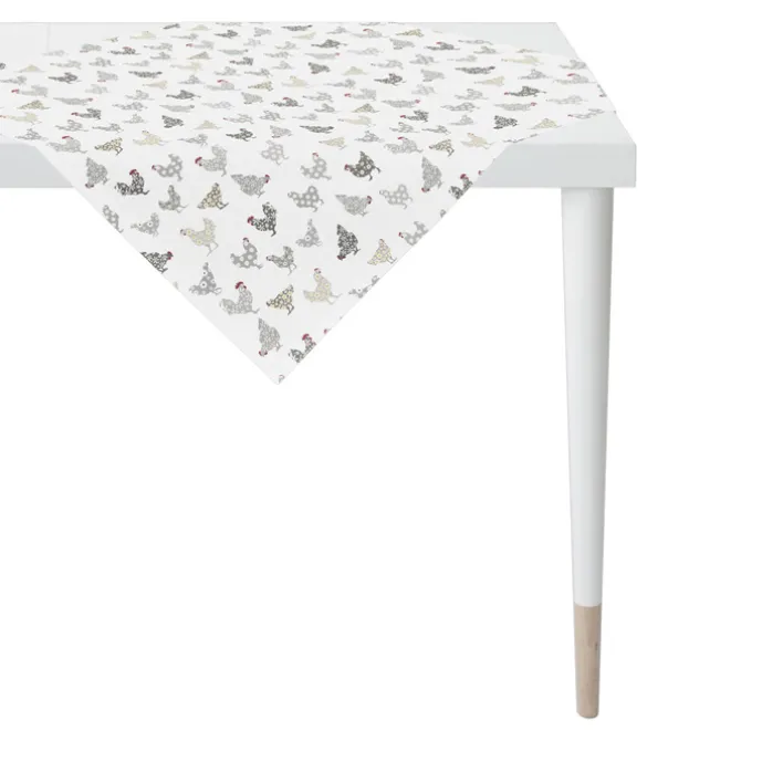 HÜHNER ALL-OVER von APELT unterstützt eine aufgeräumte Raumwirkung und eignet sich als Ergänzung für Tische in den unterschiedlichsten Farben. Quer und leicht versetzt kommt die Tischdecke am besten auf dem Tisch zur Geltung. Die pflegeleichte Tischdecke lässt sich leicht reinigen. Sie ist aus Polyethersulfon und Baumwolle und kann bei bis zu 30°C in der Waschmaschine gereinigt werden.