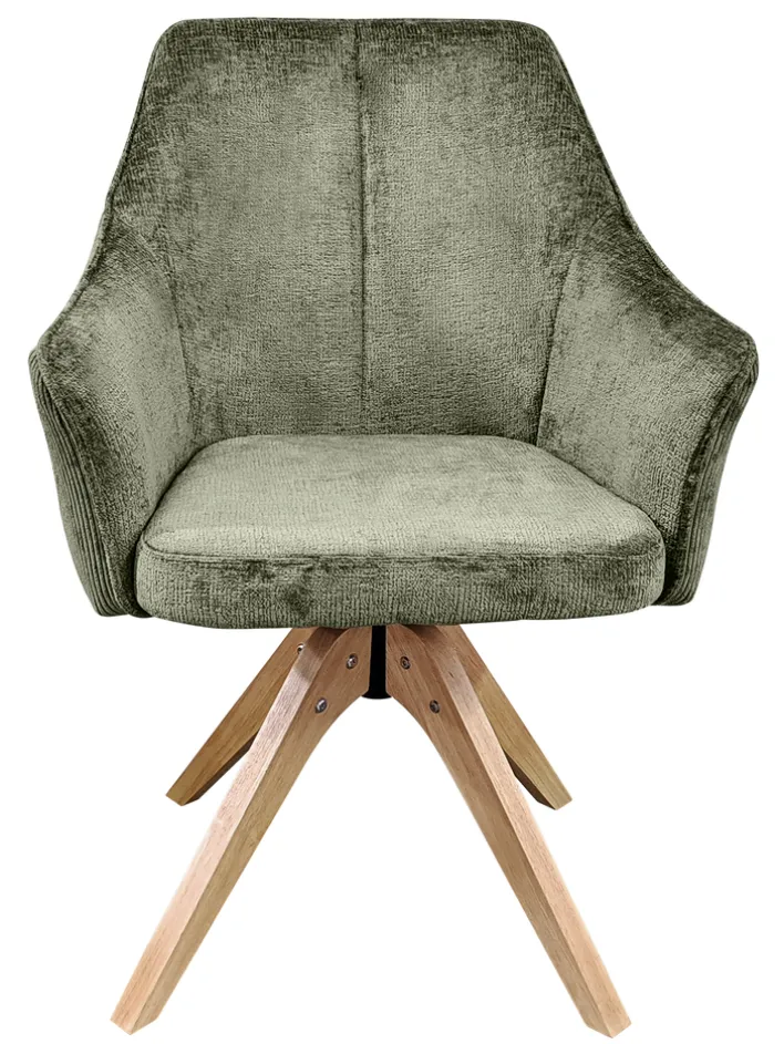 Der komfortable Armlehnstuhl Jessy mit Bezügen in Cord/Mikrofaser in der Farbe Grün ist eine Bereicherung für den modernen Wohn- oder Essbereich. Durch das stilvolle Design mit Vierfußgestell und Sitzschale passt der um 360° drehbare Stuhl zu verschiedenen Einrichtungsstilen. Die weich gepolsterte Sitzschale und ein hautfreundlicher Bezug sorgen für eine angenehme und bequeme Sitzposition auch bei längerem Sitzen. Der Armlehnstuhl schafft eine gemütliche Atmosphäre.
