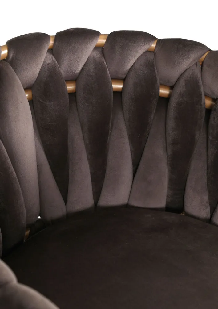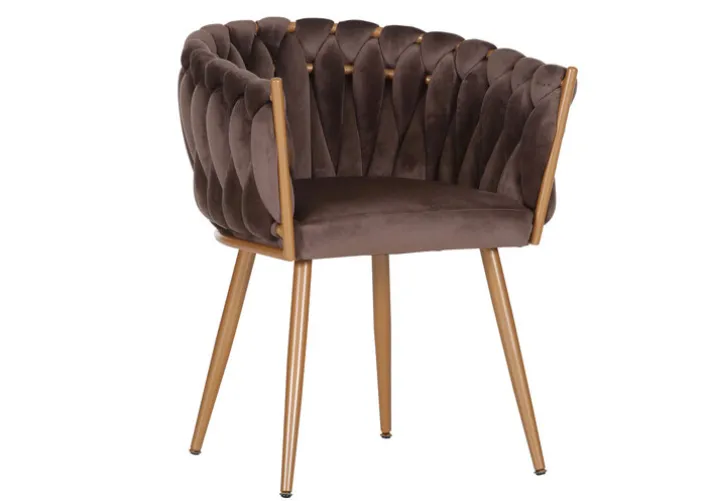 Der Armlehnstuhl der Serie WALEAH vereint stilvolles Design mit hoher Funktionalität. Mit einer Breite von 60 cm, einer Höhe von 78 cm und einer Tiefe von 55 cm bietet er komfortable Sitzmöglichkeiten. Die Sitzhöhe beträgt 48 cm, was eine angenehme Sitzposition ermöglicht. Der Stuhl besticht durch seine braune Farbgebung, die durch goldfarbene Akzente ergänzt wird, und fügt sich harmonisch in verschiedene Wohnstile ein.
