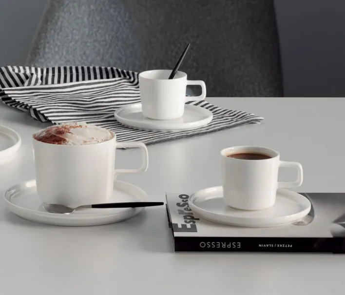 Das Espressotasse OCO mit Untertasse 6er Set von ASA Selection fasziniert in einem hellen Weißton. Jede der kleinen Tassen mit dem Durchmesser von 12,0 Zentimetern und der Höhe von 11,6 Zentimetern fasst ein Volumen von 80 Millilitern, sodass auch ein doppelter Espresso in die formschönen Modelle passt.