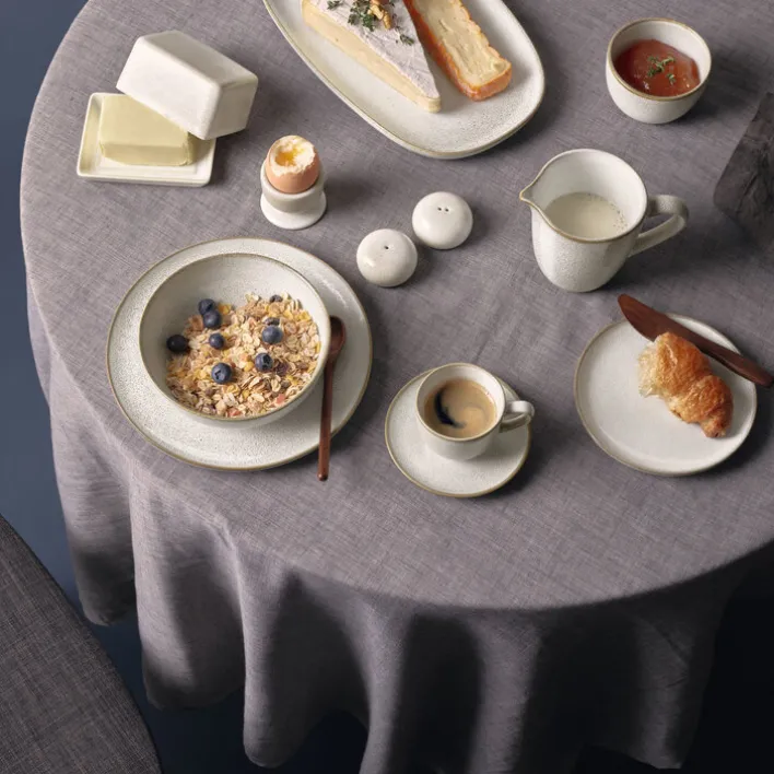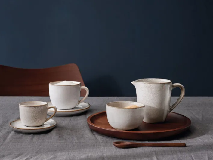 Ob Kaffee oder Tee, das ASA Milchkännchen SAISONS im hellen Sandweiß gehört auf dem ansprechend gedeckten Frühstückstisch immer dazu. Mit seiner zierlichen Tülle und dem hübsch gebogenen Henkel strahlt das gut 9 cm hohe Kännchen Grazie und Anmut aus. Rund 250 ml Milch oder Kaffeesahne lassen sich darin formschön anbieten.
