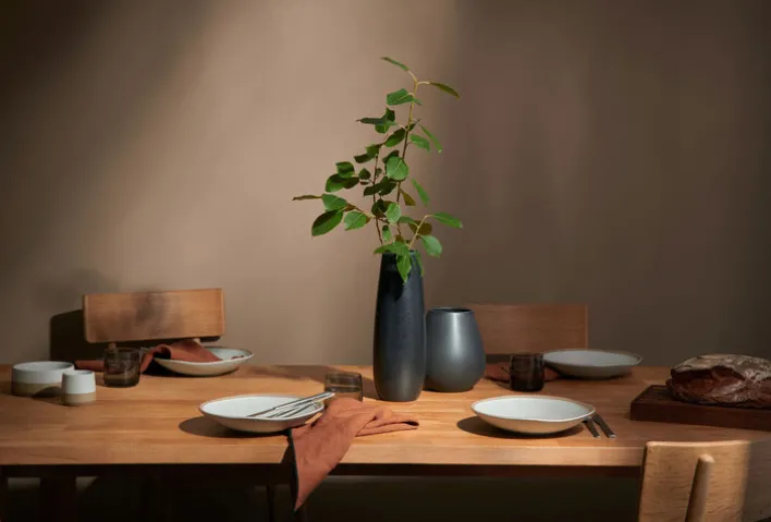 Ein Sonnenuntergang an der unregelmäßigen Küstenlandschaft Dänemarks ist die Inspiration für die Pastateller CAJA. Dabei stellen die unglasierten Bereiche den Strand dar und stehen auch für den Bernstein, den man in Dänemark am Strand finden kann. Jeder Teller ist ein Unikat, in dem die glasierten Grenzen etwas unterschiedlich verlaufen, was die Teller noch schöner macht. Hergestellt aus Steinzeug, sind die Pasta Teller von dem portugiesischen Label ASA unglaublich stabil, wodurch sie sogar in der Gastronomie eingesetzt werden können.